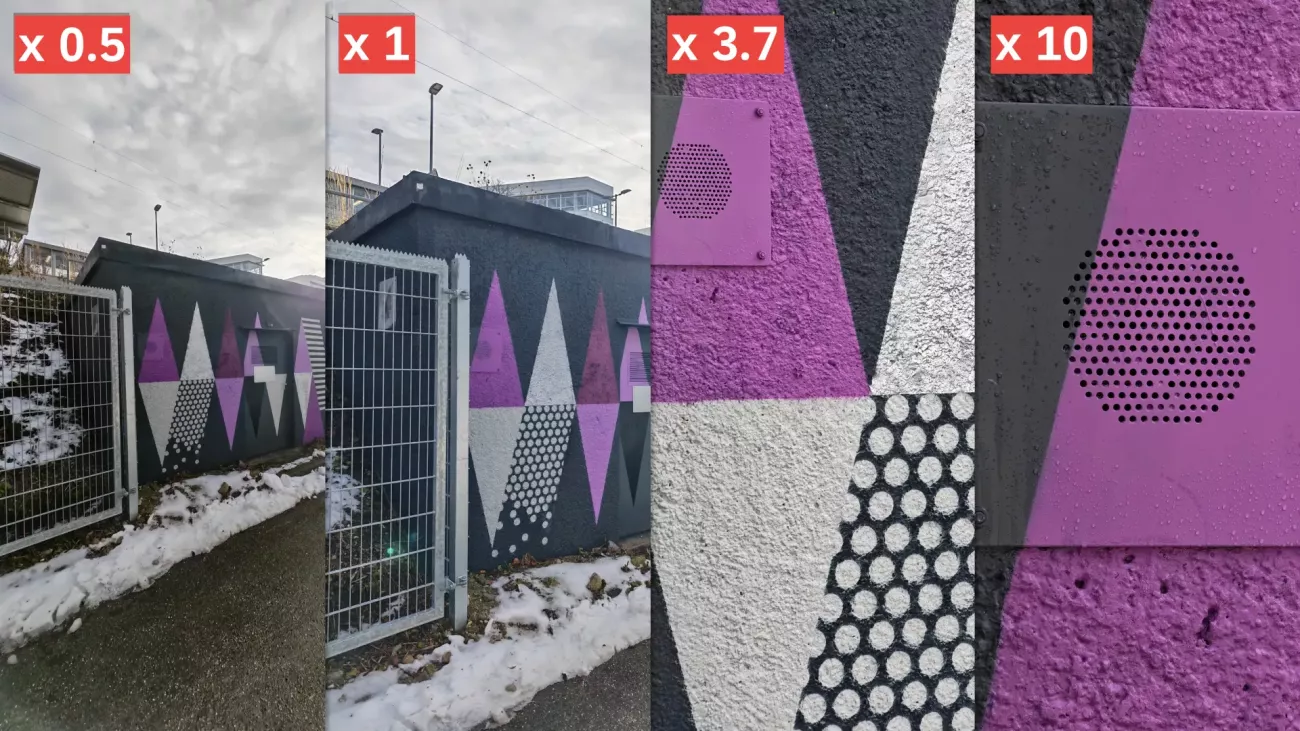Nejvíc nás samozřejmě zajímala kvalita působivého 200Mpx teleobjektivu. Optický zoom má praktické 3,7násobné základní zvětšení a pomocí digitálního vylepšení dokáže pořizovat snímky s až 100násobným přiblížením. Kvalita snímků s tak vysokým přiblížením hodně závisí na obsahu snímku. Pokud jsou zde linie, které může umělá inteligence vyhladit, tak je výsledek překvapivě výborný, ale většinou se takový zoom dá použít pouze pro informativní účely.