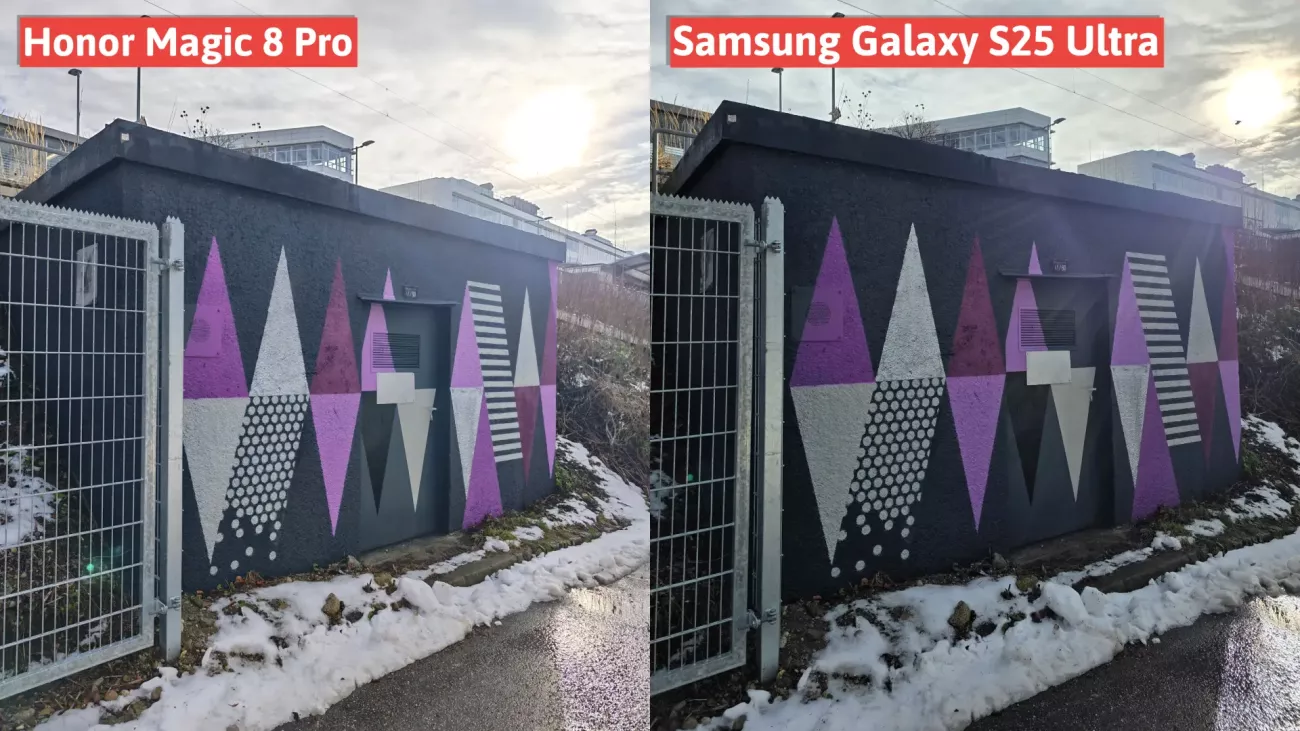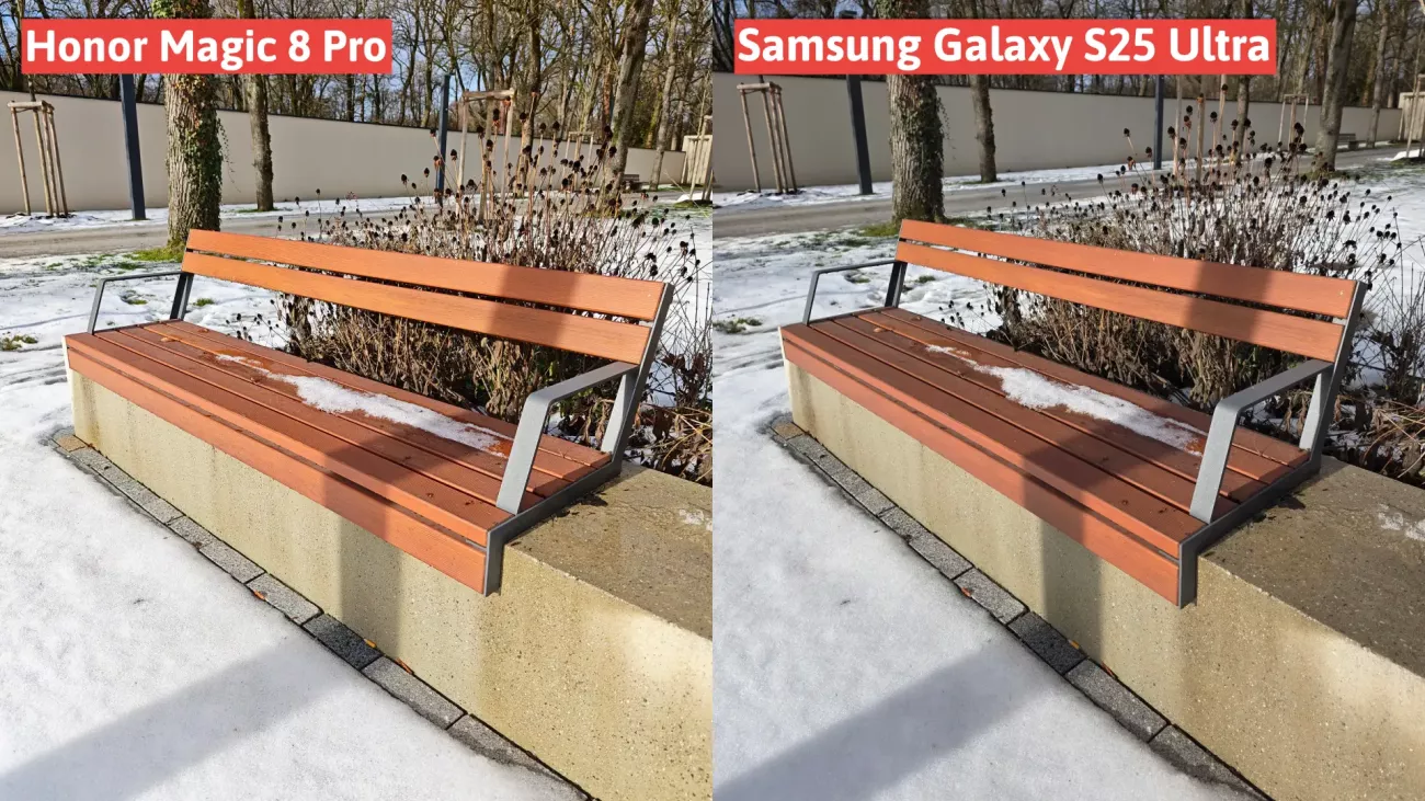Fotografie pořizované za dne vypadají skvěle. Honor Magic8 Pro produkuje snímky s velmi pěknými barvami a prokreslenými detaily. Ve srovnání s vlajkovou lodí Samsung S25 Ultra opět nabízí poněkud větší dynamický rozsah. Magic8 Pro dokáže lépe prosvítit tmavé části scény, takže je zobrazuje více detailů a struktur, na druhou stranu je ale daní za celkově příliš intenzivní světlost občasný nedostatek kontrastu.