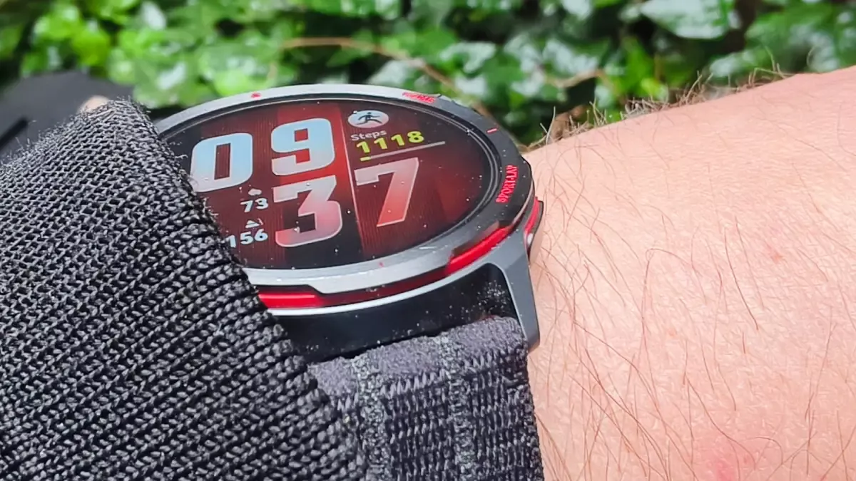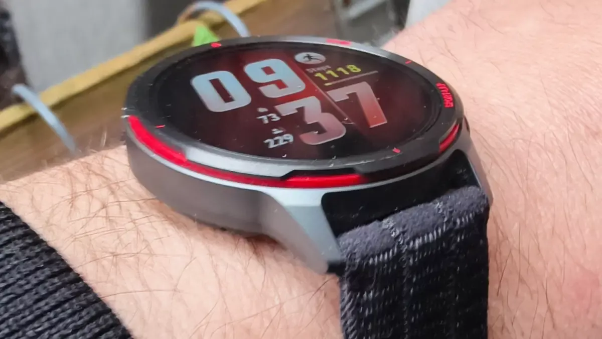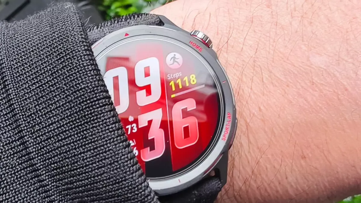 1,32” OLED displej má vysoké rozlišení 466 x 466 bodů (353 ppi) a vynikající jas, díky kterému je obsah obrazovky výborně čitelný i na jasném slunci. Podle výrobce dosahují hodinky maximálního jasu až 3 000 cd/m². Měření jasu displejů chytrých hodinek je poněkud obtížné, v našem testu jsme však naměřili alespoň 2 300 cd/m², což je dostatečný jas pro všechny venkovní aktivity. Hodinky umožňují aktivovat funkci Always-On displeje, který na ciferníku zobrazuje čas neustále, ale samozřejmě má negativní vliv na výdrž baterie. Displej chrání před poškrábáním ochranné sklo Kunlun Glass 2, tělo hodinek je vyrobeno z odolné titanové slitiny.