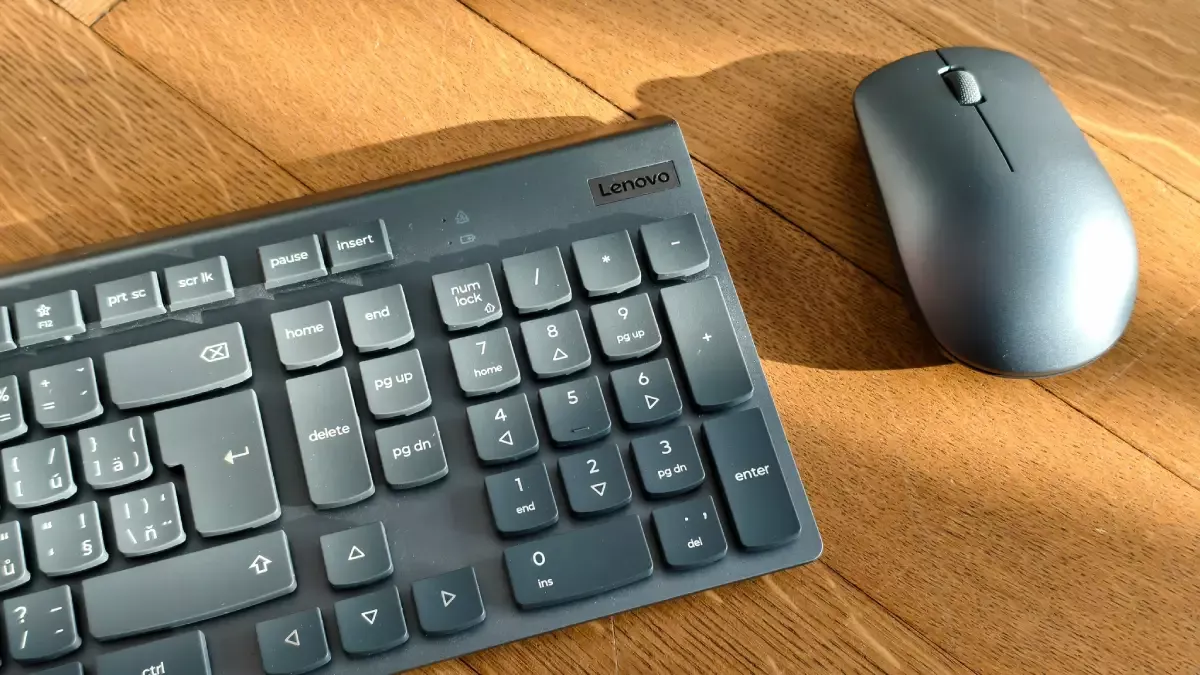 Součástí výbavy je kromě napájecího adaptéru i bezdrátový set klávesnice a myši. Ty vcelku ladí se vzhledem a barvou počítače, ale jedná se o periferie z viditelně levnější kategorie než jakou zastává tento AiO. Každopádně jsou dobře použitelné a myš svou symetričností potěší i leváky.