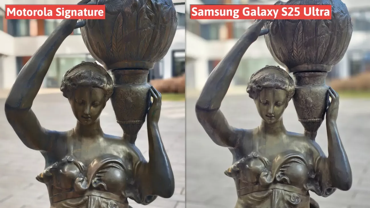 Ve srovnání se Samsungem Galaxy S25 Ultra nás Motorola Signature přesvědčila především výraznější ostrostí a detailnějším zobrazením. Samsung S25 Ultra na druhou stranu boduje jasnějším laděním, sytějšími barvami a celkově harmoničtějším obrazovým efektem. Navzdory vysoké kvalitě obou fotomobilů hovoří v přímém srovnání důslednější vykreslení detailů spíše ve prospěch Motoroly, Samsung ale také pořizuje krásné snímky. 50Mpx selfie kamera Motoroly Signature je velmi slibná, ale ve srovnání se Samsungem se nám nelíbila tak moc. Oba modely však nabízejí působivá 8K a 4K videa.