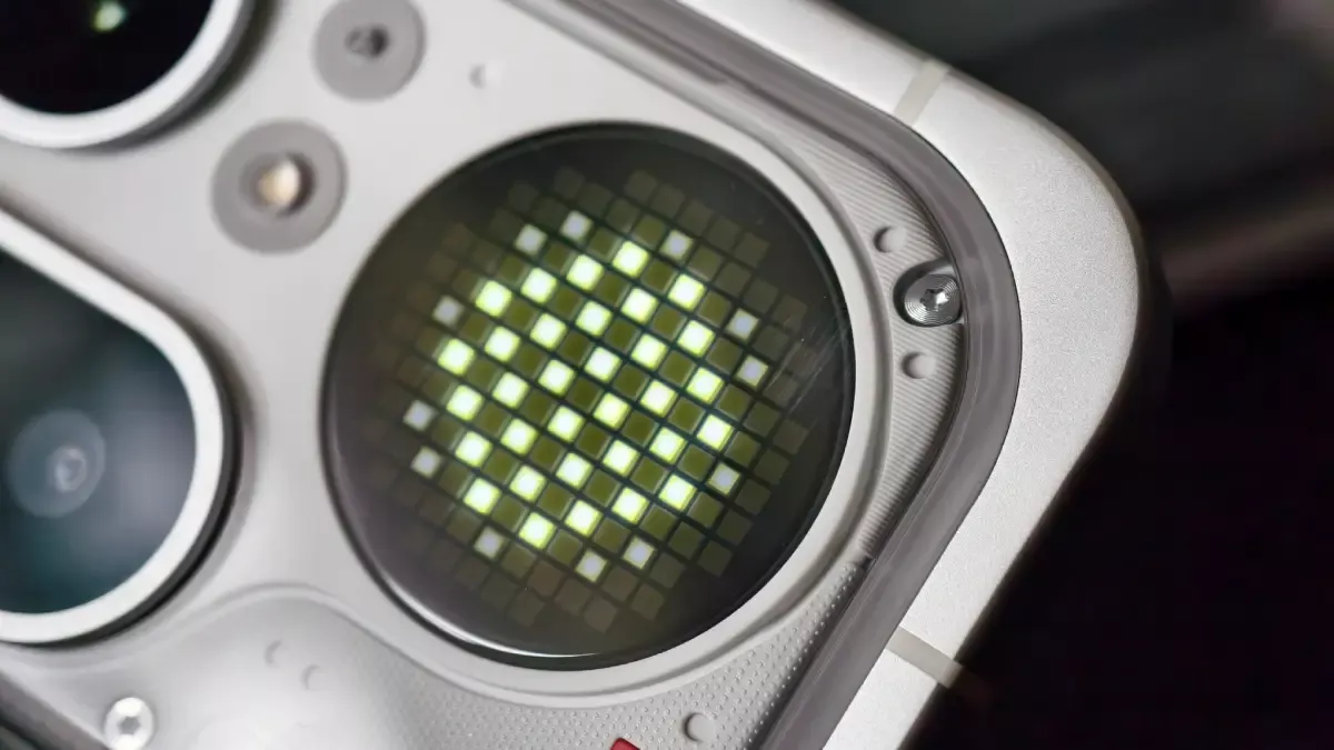 Pokud si přejete pořídit selfie hlavním zadním fotoaparátem, můžete displej použít spolu s funkcí Zrcadlo Glyph, která má pomáhat se správným nasměrováním hlavního fotoaparátu, ale kvůli nízkému rozlišení je tato funkce podle nás zcela zbytečná. Loňský model Nothing Phone (3) mimochodem používá „glyfovou matici“ s vyšším rozlišením a více funkcemi.