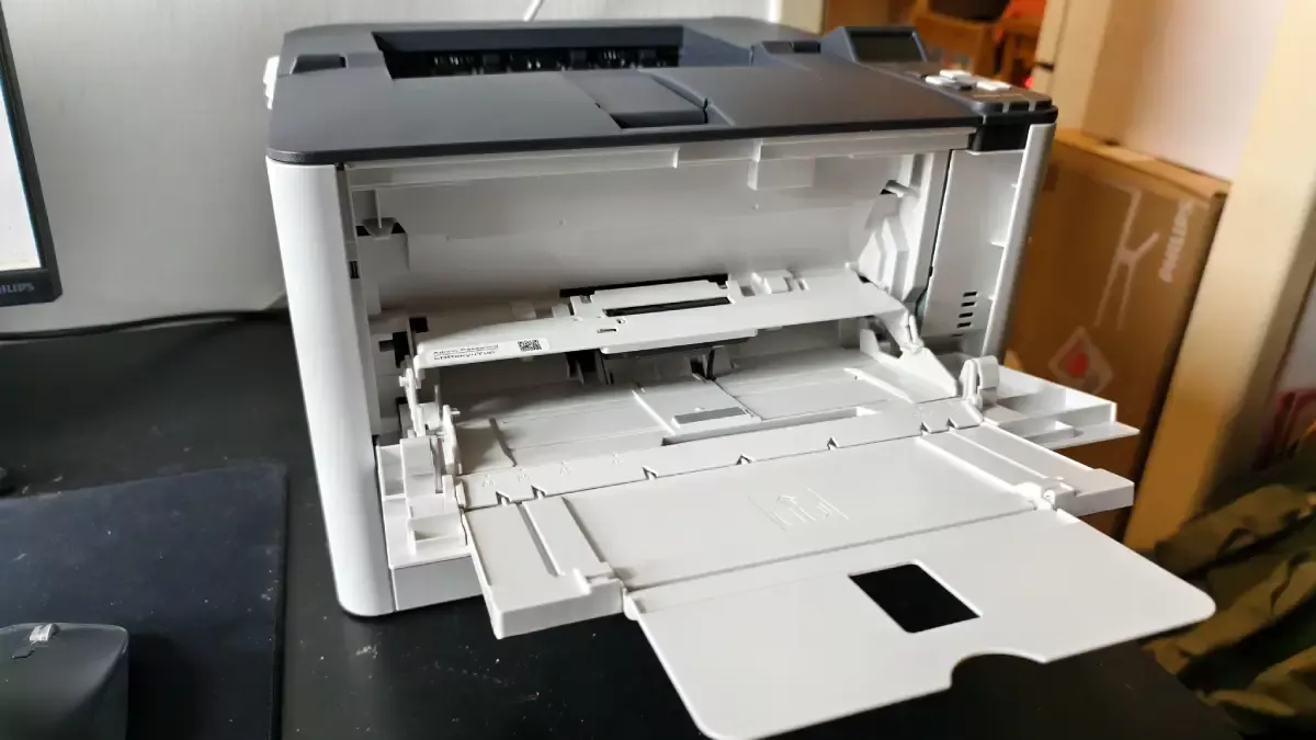 Kromě spodního zásobníku lze tiskárnu OKI B433DN nakrmit i pomocí předního multifunkčního podavače. Ten se obzvláště hodí pro tisk na nestandardní formáty.