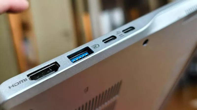 Portová výbava notebooku Acer Swift 14 AI AMD obsahuje i velký HDMI konektor
