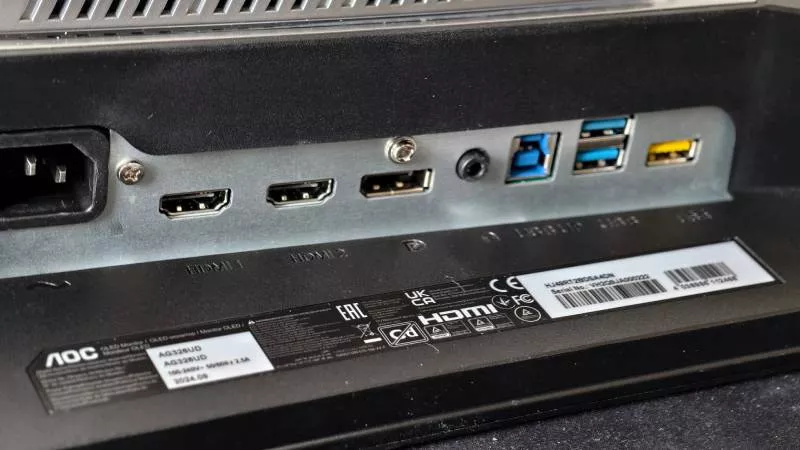 AOC Agon Pro AG326UD nemá USB-C konektor, ale disponuje tříportovým USB-B/A přepínačem