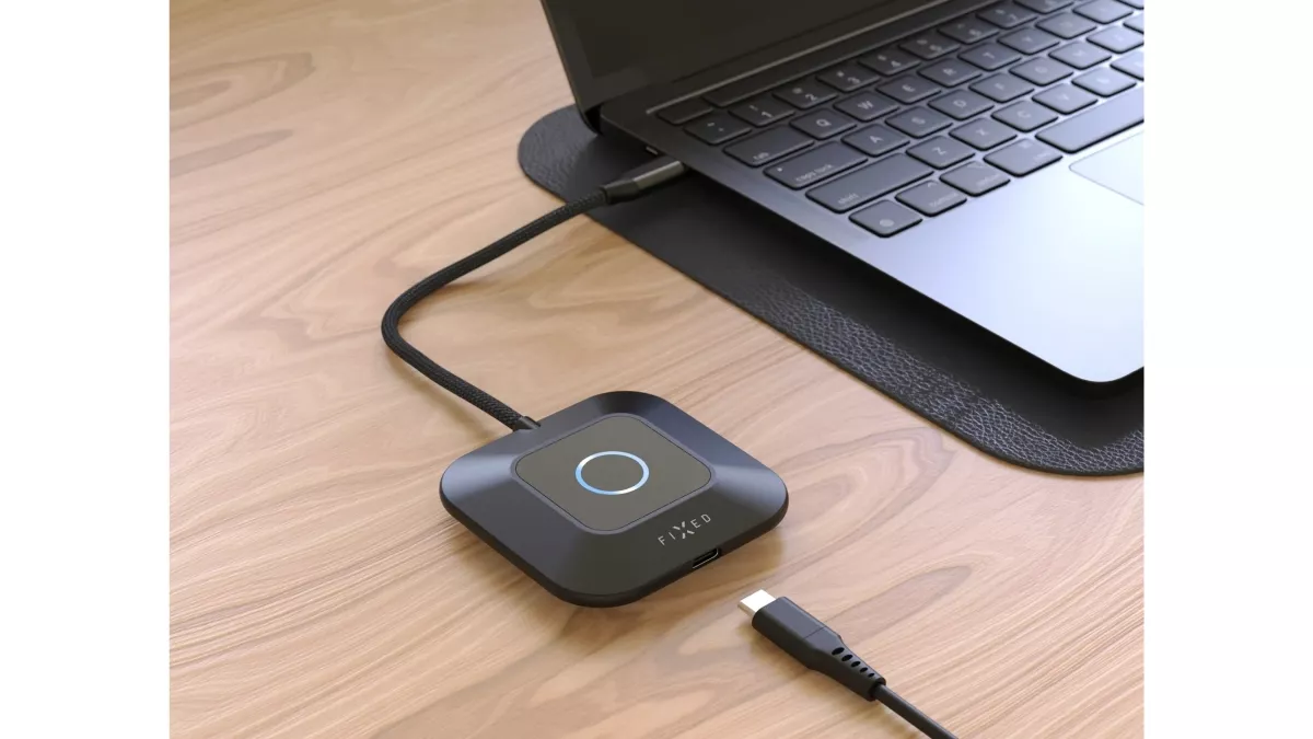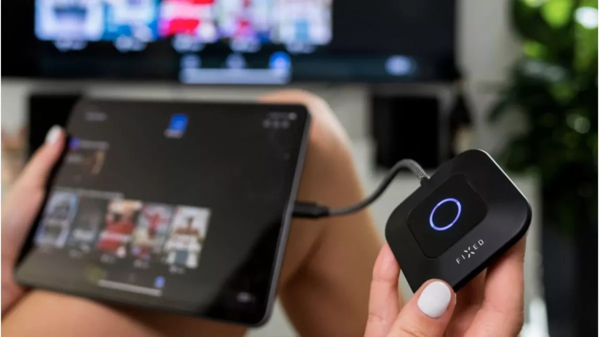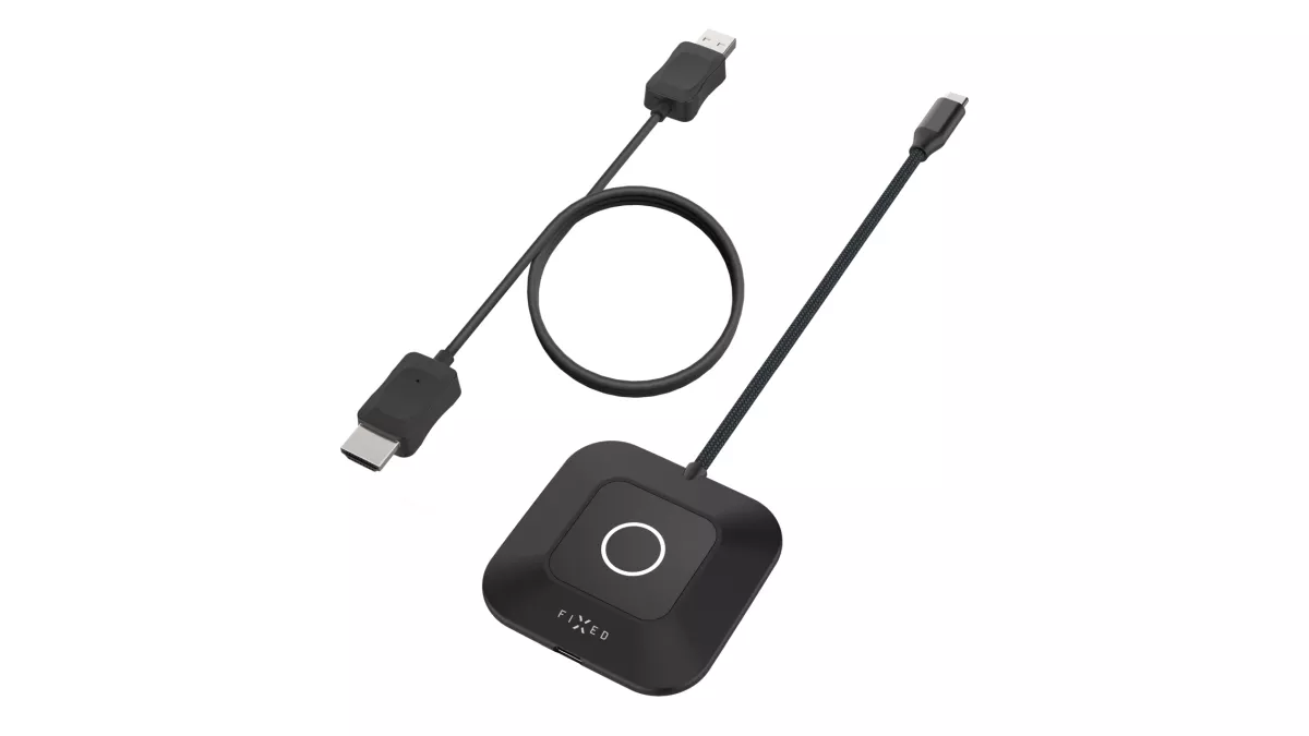 Pokud hledáte univerzální řešení nezávislé na vzájemné kompatibilitě vysílacího zařízení a vzdálené obrazovky, nabízí se FIXED AirLink. Tato sada se skládá z vysílače v podobě nevelké krabičky s 20cm kabelem zakončeným koncovkou USB-C. To znamená, že potřebujete zařízení s podporou DisplayPort Alt Mode, jako jsou aktuální modely notebooků a vyšší řady androidových smartphonů či tabletů.