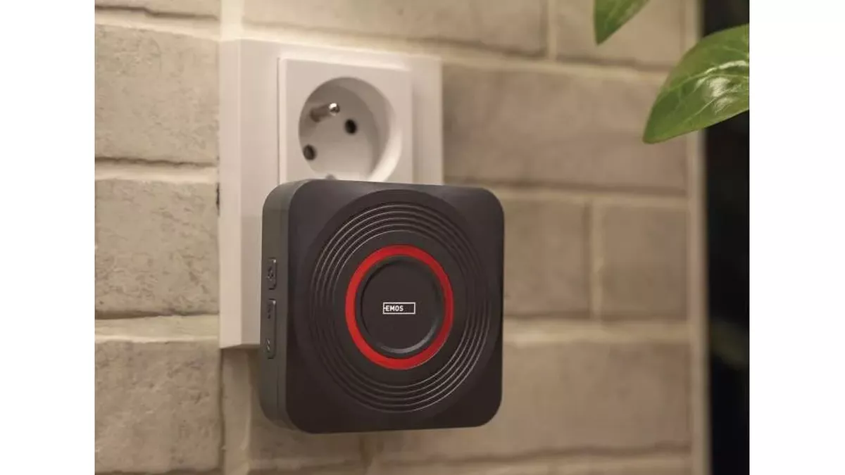 GoSmart Domovní bezdrátový zvonek se skládá z venkovního voděodolného tlačítka a vnitřní jednotky, která se zapojí přímo do elektrické zásuvky. Prostřednictvím mobilní aplikace EMOS GoSmart se zvonek připojí k domácí Wi-Fi a je možné ho snadno ovládat z mobilu.