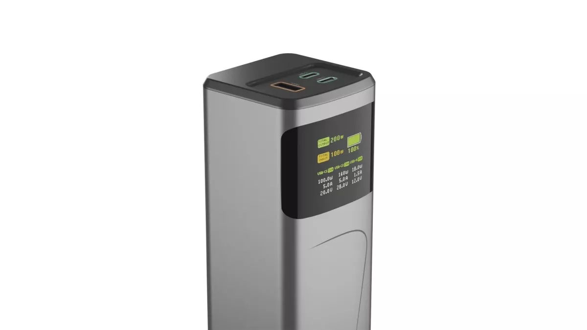 Celkový výkon powerbanky je 200 W, na jeden USB-C port zvládne nejvýše 140 W a v případě připojení dvou zařízení je to 2× 100 W. Maximum pro USB-A je 18 W a při nabíjení třech zařízení dávají porty 100, 65 a 18 W. Přesné informace o zbývající kapacitě powerbanky i aktuálním napětí, proudu a nabíjecím výkonu na jednotlivých portech poskytuje velký barevný displej na těle zařízení.