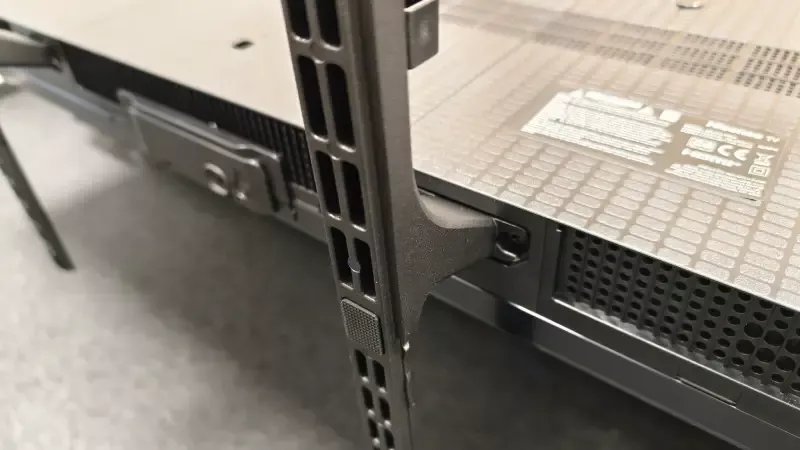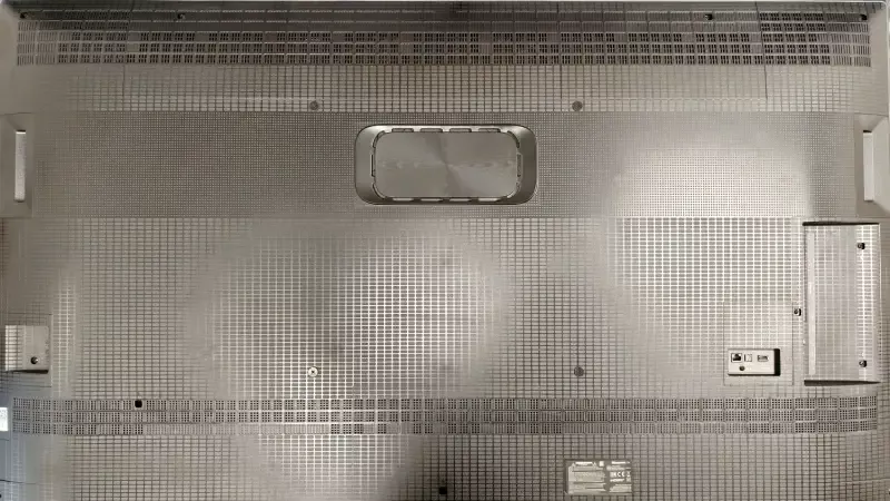 Televize váží cca 20 kg a k její instalaci jsou potřeba dva. Úchytky stojanu jsou umístěny ve středu televizoru, takže jej lze umístit i na menší stolek. Konektorová výbava zahrnuje 4x HDMI 2.1 (jeden s eARC), 2x USB, LAN, optický audio výstup, BT, Wi-Fi 6E a digitální i analogový zvuk.