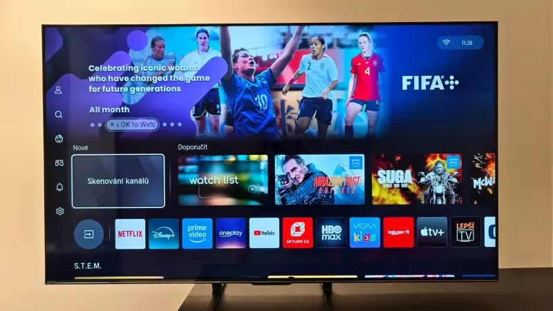 Hisense 65U7Q PRO používá vlastní operační systém VIDAA, který sice nemá možnost stahování aplikací z rozsáhlé databáze Obchodu Play, ale je rychlý, přehledný a podporuje všechny klíčové streamovací aplikace, a to jak ty mezinárodní (Netflix, Disney+, Amazon Prime Video…), tak i české (Lepší TV, Oneplay, iVysílání ČT, Prima+, Telly, SledováníTV, Skylink Live TV...). Samozřejmě nechybí DVB-T2/S2/C tuner, který však není zdvojený.
