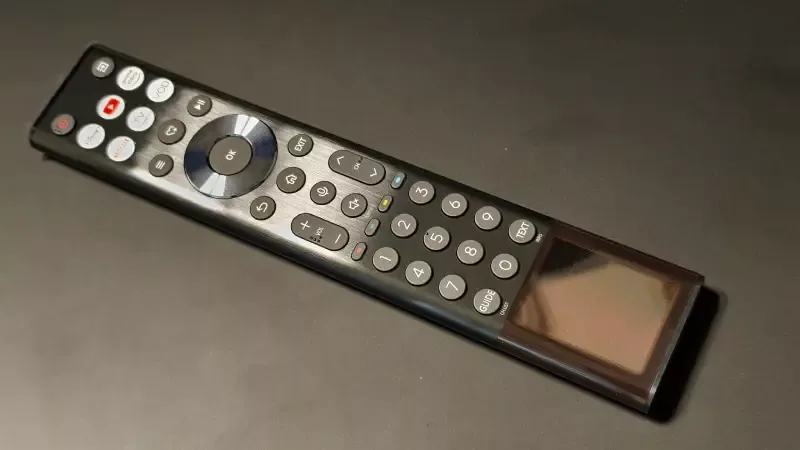 Součástí dodávky je hodně velký dálkový ovladač se spoustou tlačítek a solárním nabíjecím panelem. K dispozici jsou dedikovaná tlačítka pro hlavní streamovací služby i pro zvukové funkce, při večením sledování oceníte podsvícení tlačítek. Design samotné televize je nepříliš výrazný, ale s tenkým rámečkem působí moderně. Displej má slušnou antireflexní úpravu, která lehce zabraňuje silným odrazům, ale není zdaleka tak účinná jako například u nedávno testovaného špičkového Samsungu QE55S85F.