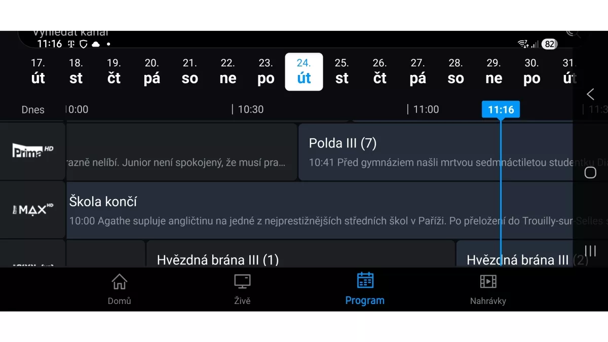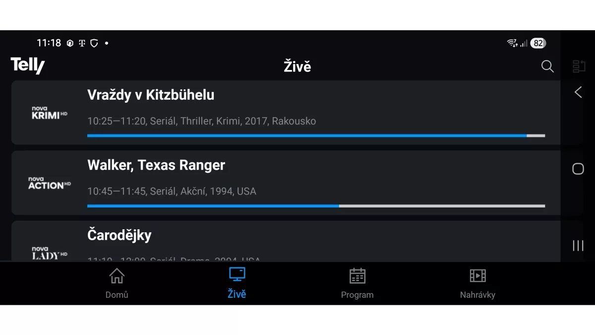 Bez ohledu na to, kde budete službu Telly využívat, jsou všechny televizní kanály k dispozici 7 dní zpětně. To znamená, že máte přístup k desítkám tisíc hodin obsahu, ve kterém můžete snadno vyhledávat. Přehrávání programů lze pozastavit a přetáčet dopředu i dozadu a také přeskakovat reklamy – s výjimkou kanálů skupiny Prima, kde to licenční podmínky nedovolují.