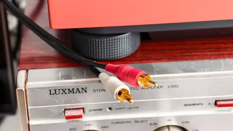 Součástí dodávky gramofonu Technics SL-40CBT jsou i základní Cinch kabely