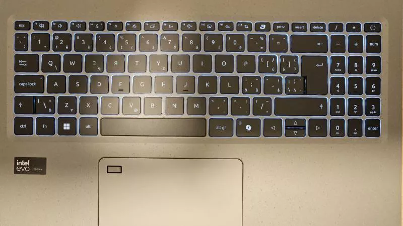 Hlavní ale je, že tlačítka jsou dostatečně velká a mají rozumnou odezvu s poměrně přesným chodem, takže se na notebooku dají psát i dlouhé texty. Jen jsme si tedy po letech testování řady Acer Vero ještě nezvykli na otočená tlačítka “E” a “R”, která v nás stále vyvolávají lehké záchvaty dyslexie. Pod klávesnicí je umístěn velký beztlačítkový touchpad se čtečkou otisků prstů integrovanou do levého horního rohu.
