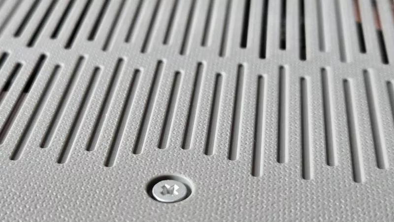 Šasi notebooku obsahuje ještě více recyklovaného plastu, tentokrát se na konstrukci těla podílí z celých 60 %. Povrch testovaného modelu opět připomíná strukturou a šedou barvou recyklovaný papír, navíc je příjemný na dotek. Výsledek opět kombinuje nevšední vzhled s praktickým a k přírodě šetrným přístupem.