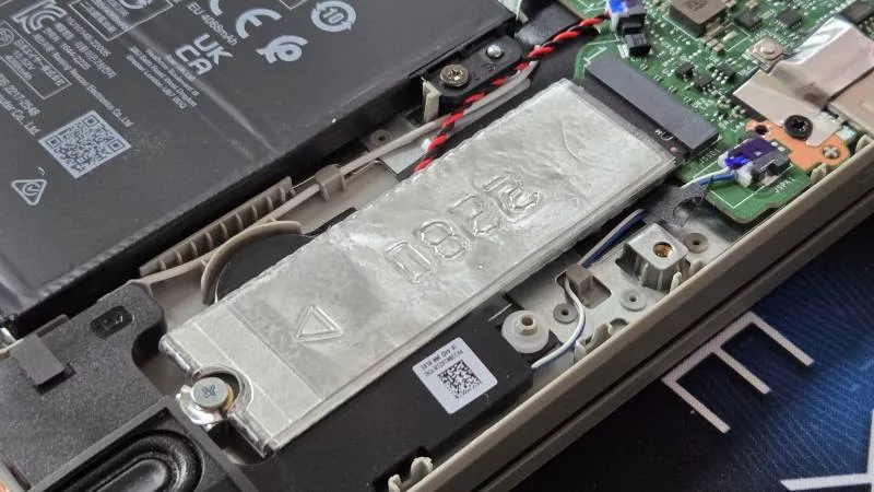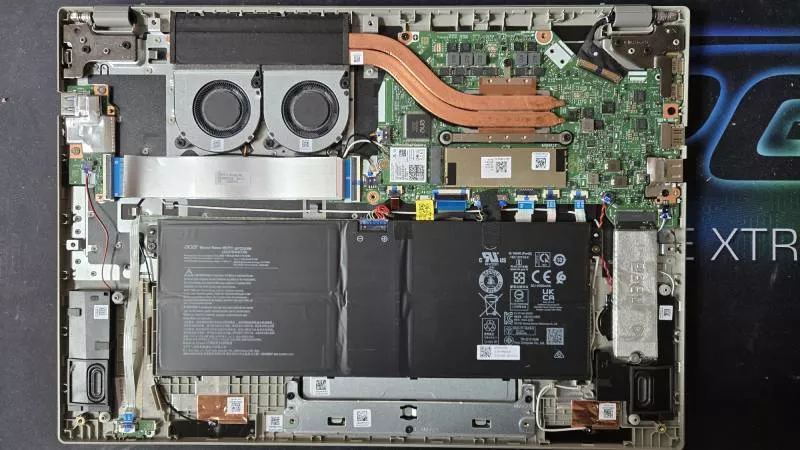 Otevřít Acer Aspire Vero 16 je snadné, ale vyměnit lze pouze M.2 SSD a Wi-Fi modul, operační paměť je napevno přiletovaná k základní desce a slot pro její rozšíření chybí