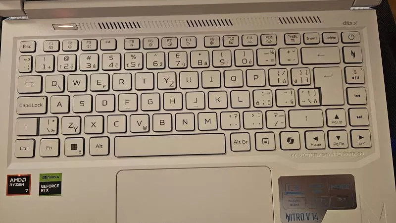 Acer do této řady notebooků zvolil nové Ryzeny 7 od AMD, námi testovaný model nese označení 8845 HS a pracuje s nominální pracovní frekvencí 3,8 GHz, kterou dokáže krátkodobě zvýšit na 5,1 GHz. K dispozici je osm výpočetních jader s celkem 12 výpočetními vlákny a součástí SoC je i integrovaná neurální jednotka s celkovým výkonem 38 TOPs, takže sám o sobě nedosahuje specifikací pro Windows Copilot+, což ale opravdu nevadí, protože k dispozici je AI jednotka grafické karty s výkonem až 194 TOPs. A kdo by chtěl plnou podporu Copilot+ přímo na procesoru, může sáhnout po nedávno uvedeném modelu Nitro V14 AI AMD s procesorem AMD Ryzen 7 350, jehož NPU dosahuje 50 TOPS
