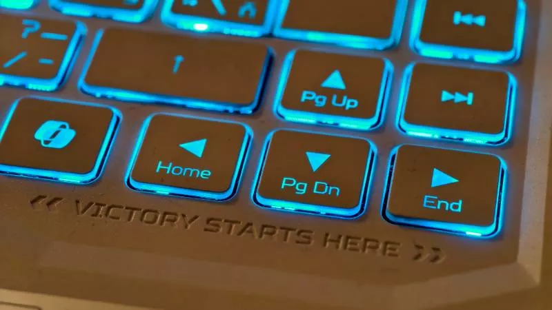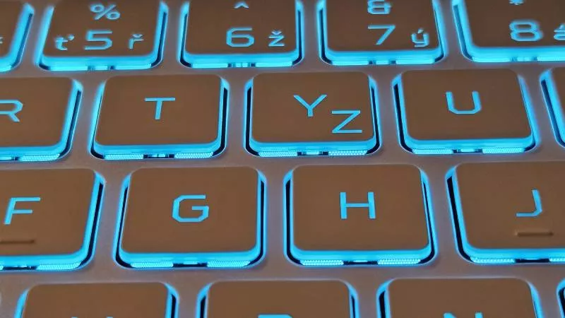 Klávesnice s modrým podsvícením je osazena poměrně velkými tlačítky s nízkým zdvihem a dobrou odezvou. Na notebooku jsme pár týdnů nejen hráli, ale i tvořili texty a obojí zvládala klávesnice bezchybně. Překlepů bylo minimum a při hraní nás ani nenapadlo sahat po externí klávesnici. Líbil se nám velký Enter a BackSpace, velikost Shiftů je také slušná. Na pruh multimediálních ovladačů na pravé straně klávesnice jsme si museli chvilku zvykat, ale podobné výstřelky jsou na klávesnicích herních notebooků běžné.