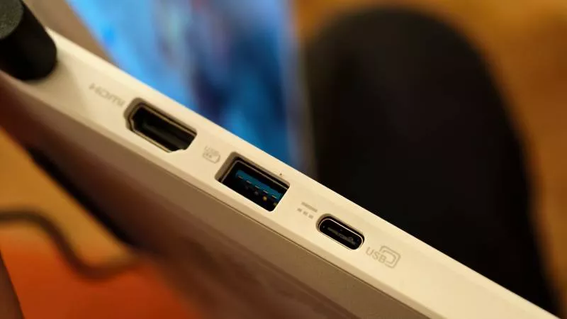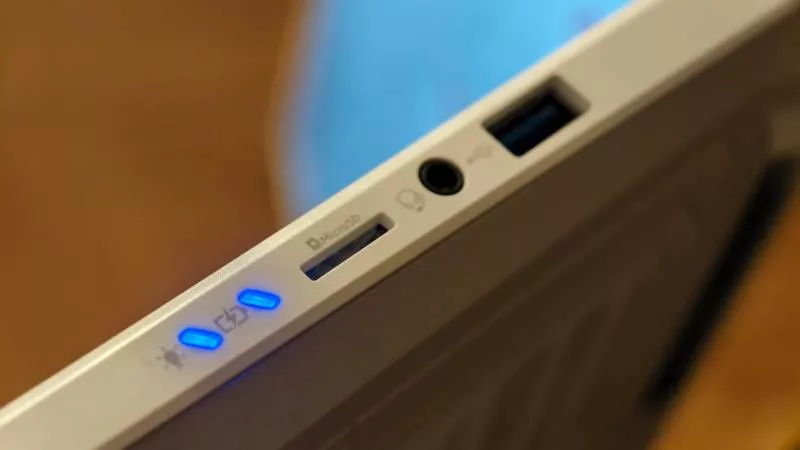 Do těla o tloušťce se pohodlně vešly i větší konektory typu HDMI 2.1 a 2x USB-A (3.2 Gen1), potěšila nás čtečka microSD karet, nechybí 3,5mm audiozdířka a Kensington Lock. LAN zde tedy nenajdeme, ale o přístup k internetu se stará Wi-Fi 6.