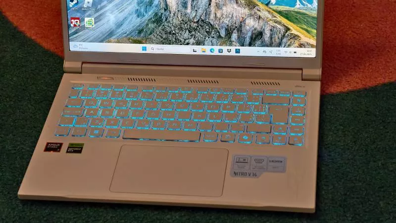 Acer Nitro V14 patří do dnes hodně oblíbené kategorie malých a lehkých notebooků s vysokým výkonem a pokročilými herními vlastnostmi. Tento notebook sebou můžete pravidelně každý den nosit v batohu a s hmotností 1 654 gramů to skoro nepoznáte, napájecí adaptér je poměrně malý a váží 350 gramů (bez kabelu). V případě potřeby vydrží při práci kancelářskými aplikacemi a internetem na baterii celý pracovní den.
