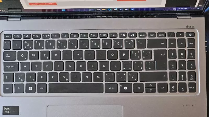 Klávesnice notebooku Acer Swift Go 16 EVO obsahuje i numerický blok