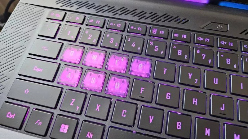 Podsvícení klávesnce notebooku Aorus 16X 9KG je originální, ale ne moc praktické