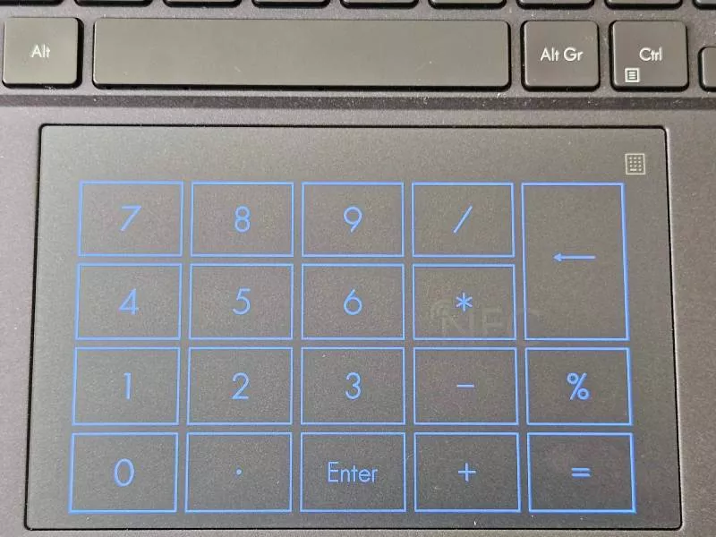 Velký touchpad notebooku Asus ExpertBook B9 OLED B9403 s integrovanou funkcí numerického bloku