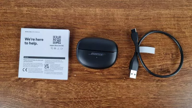 Bose Ultra Open Earbuds se přes USB-C plně dobijí za 148 minut, bezdrátové nabíjení chybí.