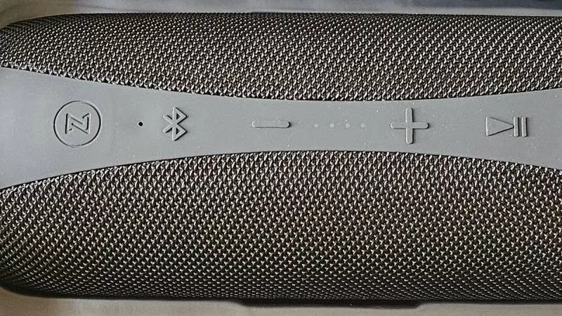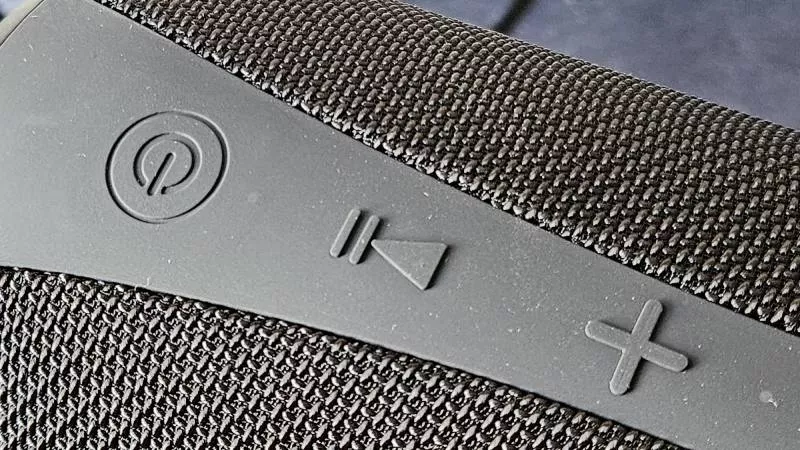 Tělo reproduktoru Buxton BBS 7700 je oblečeno do na dotyk příjemné pevné tkaniny, která jej chrání před poškrábáním. Ovládací prvky na horní straně slouží k regulaci hlasitosti, přeskakování mezi skladbami, párování telefonu a samozřejmě nechybí vypínač. Zařízení bohužel neprovází žádná mobilní aplikace, ve které by bylo možné regulovat ekvalizér nebo aktualizovat firmware, ale to je u levnějších Bluetooth reproduktorů běžné. Zvuk v podstatě žádný výrazný zásah ekvalizéru v továrním (a jediném možném) nastavení nepotřebuje.