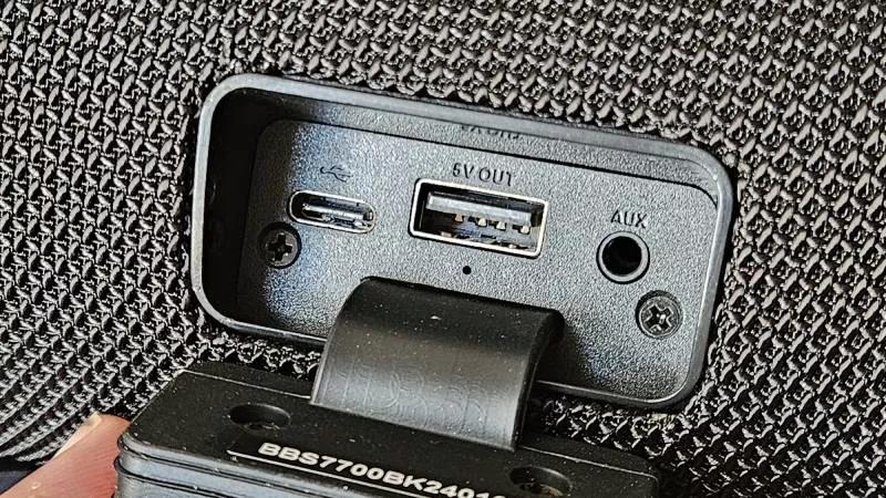 Zdroj hudby lze s reproduktorem samozřejmě propojit bezdrátově přes Bluetooth 5.0 s podporou profilů A2DP 1.3, AVRCP 1.6, HFP 1.7 a SPP 1.2, včetně SBC kodeku, ale pod gumovým krytem se nachází i analogový 3,5mm konektor a USB zdířka pro přehrávání z flashdisku. Z USB disku lze přehrávat soubory typu FLAC, MP3 i WMA.
