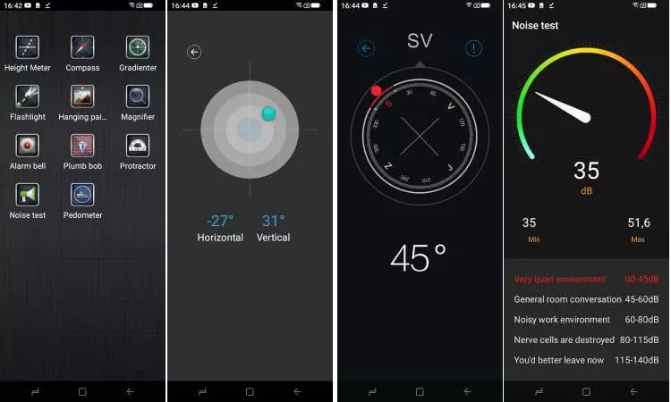 Doogee Smini disponuje praktickými aplikacemi v podobě úhloměru, kopasu, hlukoměru nebo vodováhy