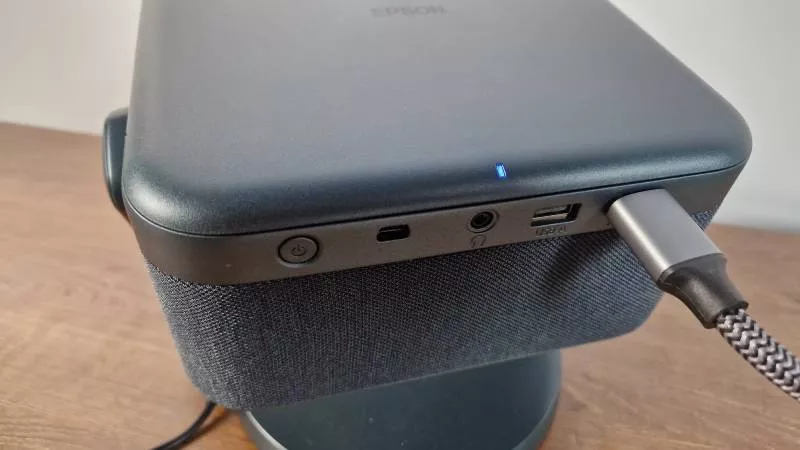 Na zadní straně projektoru Epson EF-22N se nachází HDMI vstup, konektor USB-A pro připojení flash disku a 3,5mm audiozdířka