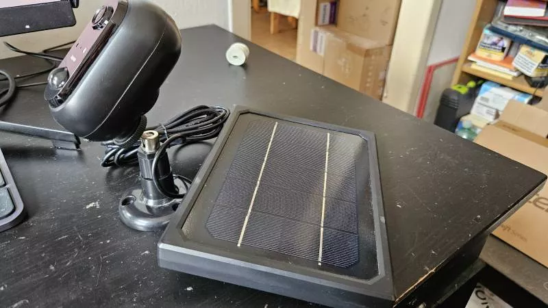 Instalace kamery je snadná, držák a solární panel jsou součástí dodávky. Solární panel má rozměry 18 x 13 cm a jeho výkon výrobce neudává. Je k němu připevněn třímetrový dlouhý kabel s bohužel pouze microUSB konektorem. Kabel je k panelu připojen napevno, praktičtější by byla možnost jeho snadné výměny.