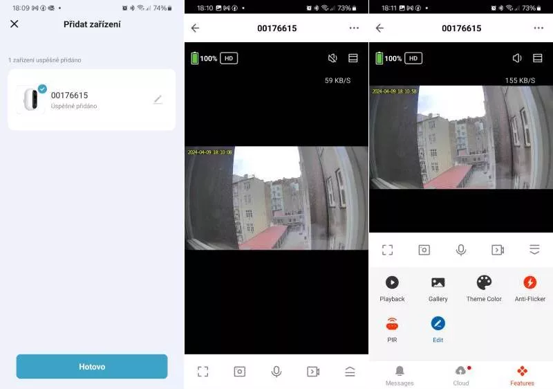 Kvalita obrazu je velmi dobrá, všechnu potřebné detaily jsou viditelné, v pohodě použitelný je i noční režim. Kamera detekuje pohyby a aktivuje se sama, video se nahrává na microSD kartu a na telefon přijde notifikace.