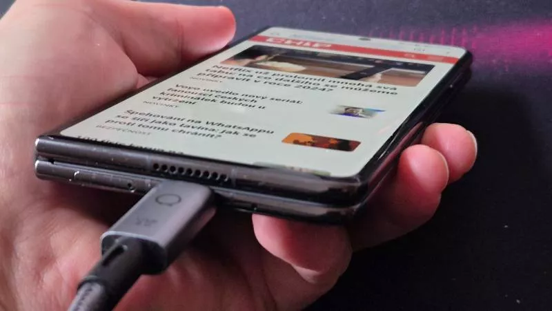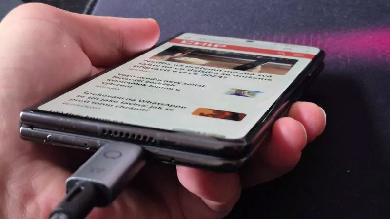 Na telefonu nenajdeme jack pro sluchátka ani slot pro paměťovou kartu, ovšem ta není ani tak nutná. Po počátečním nastavení nabízel námi testovaný přístroj zhruba 458 GB z nominální kapacity 512 GB. USB-C port pracuje na standardu USB 3.1 místo modernějšího USB 3.2, ale datové přenosy na něm probíhají stále příjemně rychle.
