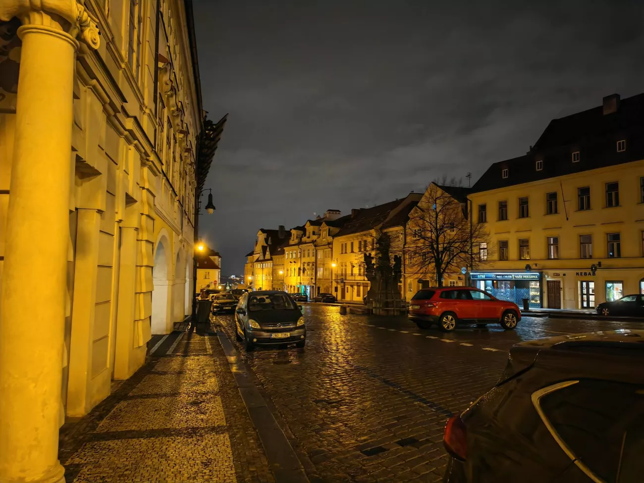 Na zadní straně, pokryté příjemnou koženkou, se nachází trojice fotoaparátů. Hlavní snímač s rozlišením 54 Mpx doplňuje ultraširokoúhlý objektiv a optický teleobjektiv se zoomem, který má maximální optické zvětšení 2,5násobné a objekty lze digitálně přiblížit až 40x. To však při nejlepší vůli nemůžeme doporučit. Od desetinásobného zvětšení jsou fotografie rozmazané a texty nečitelné. Jiné špičkové mobilní telefony to zvládají lépe. Noční režim dokáže Honor Magic V2 sice hezky rozjasnit, ale na výsledných snímcích jsou patrné rozmazané prvky.