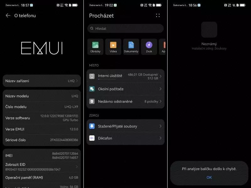 | Uživatelská paměť (int. / ext. / USB OTG) | 512 GB (462 GB) / ne / ano |