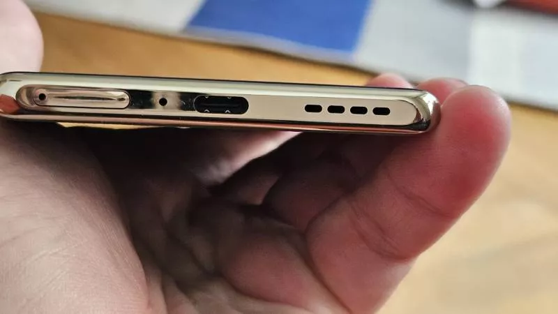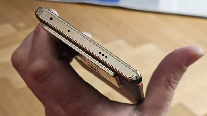 O zaobleném OLED displeji s vysokou svítivostí až 1 200 cd/m2 a jemným rozlišením jsme již mluvili, podívejme se ale zbytek těla. My jsme měli možnost vyzkoušet krásnou zelenou verzi se zády pokrytými umělou kůží. Nejenže telefonu sluší, ale dobře se díky ní drží v ruce a nezůstávají na ní otisky prstů. Kombinace zelených zad se zlatým pozadím fotografického bloku a boky působí elegantně a téměř luxusním dojmem, rozhodně ne jako pouťové pozlátko.