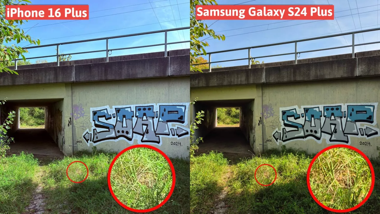 Kvalita fotografií pořízených iPhonem 16 Plus je za denního světla i při večerním focení výborná. Ostrost, detaily a kontrasty jsou tak akorát, běžné fotografie v ničem nezaostávají za snímky pořízené fotoaparátem iPhonu 16 Pro. Rozdíly jsou patrné jen díky zoomu a při natáčení 4K videa, které iPhone 16 Plus zvládá jen při 60 Hz, iPhone 16 Pro pak na 120 Hz. Přeskupení objektivů v letošní generaci umožňuje pořizovat prostorová videa pro Apple Vision Pro.