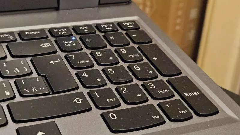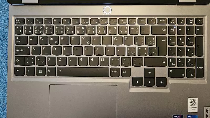 Klávesnice testovaného notebooku je osazena numerickým blokem a má střízlivé logické rozložení, jen tlačítka jsou možná až blízko u sebe. To je logická daň za numerický blok, který se musel ubytovat v těle 15,6” notebooku. Tlačítka jsou bíle podsvícená, žádná RGB diskotéka se v tomto případě nekoná, ale existují i modely Lenovo LOQ s RGB podsvícením. Pod klávesnicí se nachází velký beztlačítkový touchpad s přesným chodem.