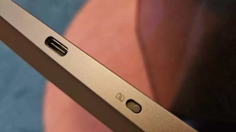 Vypínač kamery a USB-C konektor s možností výstupu videa a napájení