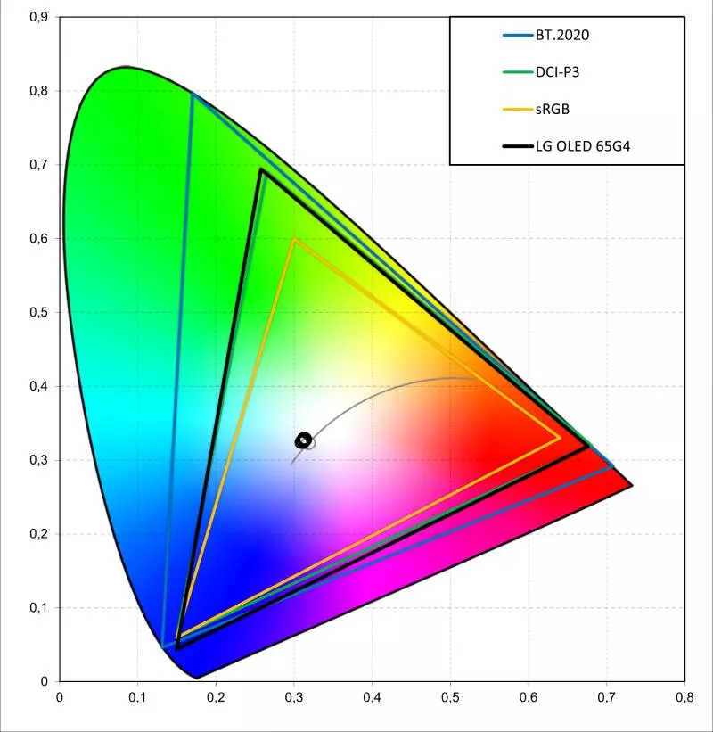 LG OLED 65G4 , pokrytí barevných prostorů