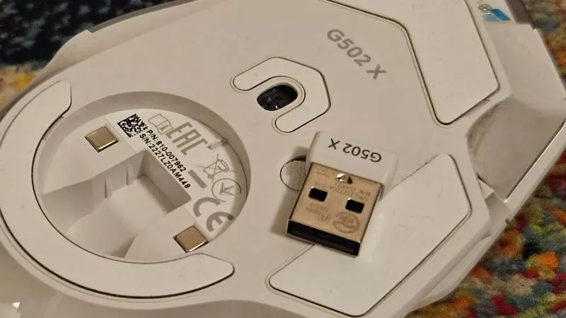 Myš Logitech G502 X Plus lze připojit pomocí USB donglu