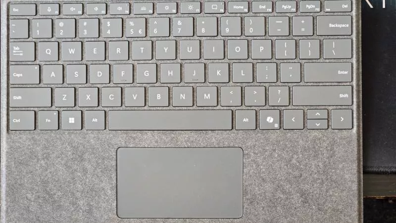 Klávesnice je tenká a plochá s krátkým zdvihem, přesto působí na dotek pevně. Při večerní práci jsme ocenili tříúrovňové podsvícení. Rozložení je klasické, horní řada tlačítek má zdvojené funkce pro přímé ovládání jasu, hlasitosti a podsvícení a mikrofonu. Samozřejmě nechybí dedikované tlačítko Copilot, ale to je zde stále prakticky jen pro okrasu.