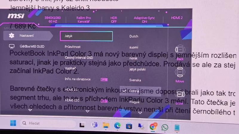 Ovládací menu monitoru MSI MPG 491CQP QD-OLED je lokalizováno do češtiny