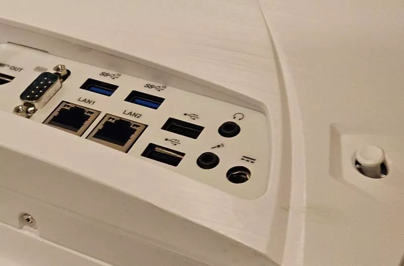 Zmíněnou specialitou je sériový port, který ocení hlavně uživatelé, kteří potřebují k počítači připojit nějaký externí přístroj. V kombinaci s dotykovým displejem tak může tento počítač sloužit jako pomocník v barech a restauracích, jako prodejní terminál a ocení jej například i lékaři nebo automechanici, kteří přes sériový port připojují diagnostické přístroje. Dotykových AIO počítačů se sériovým portem je na trhu jen málo, takže tuto část výbavy vysoce oceňujeme.