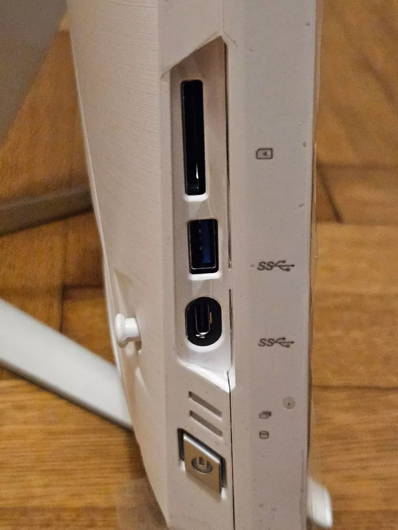 Na levém boku MSI Pro AP222T se nachází vypínač, slot pro SD karty a USB-C i USB-A konektor