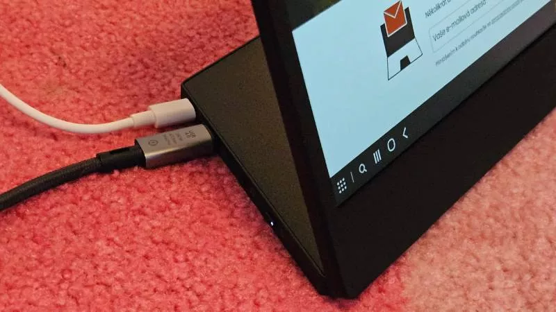 Monitor nemá integrovanou baterii, takže je nutné jej napájet z externího zdroje, kterým může být notebook, jehož USB-C port do monitoru posílá nejen obraz, ale i potřebnou elektrickou energii.