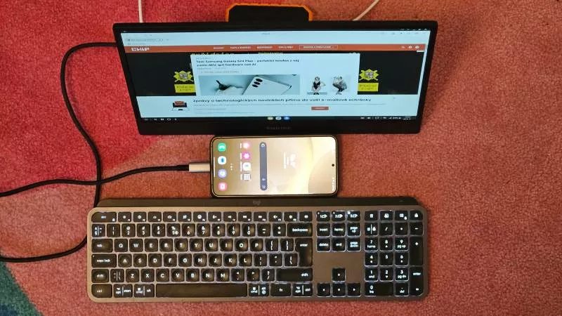 Ještě lepší než připojit monitor k notebooku je ale spárovat jej s chytrým telefonem, který podporuje práci v tzv. desktopovém režimu. My jsme si monitor vyzkoušeli s telefony Samsung a jejich systémem DeX, podobnou funkci ale nabízí většina lepších smartphonů. K telefonu jsme poté přes Bluetooth připojili sadu bezdrátové klávesnici a myši a mohli jsme pracovat prakticky stejně, jako na jakémkoliv chromebooku.
