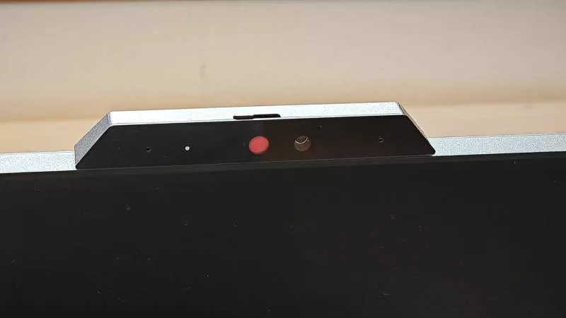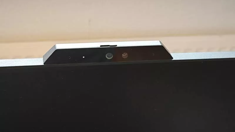 Důležitou položkou výbavy monitoru je integrovaná 5Mpx webkamera s LED indikátorem stavu a podporou Windows Hello, která umožňuje bezpečné biometrické přihlášení do Windows za méně než 2 sekundy. Pro tyto případy je třeba mít PC připojené přes USB-C, ale o tom dále.